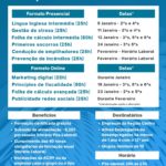 Janeiro: · Língua inglesa intermédia – Presencial – 2ªs e 4ªs – 11/01 a 03/02 · Socorrismo básico – Presencial – 3ªs, 5ªs e 6ªs – 12/01 a 28/01 · Língua francesa intermédia…